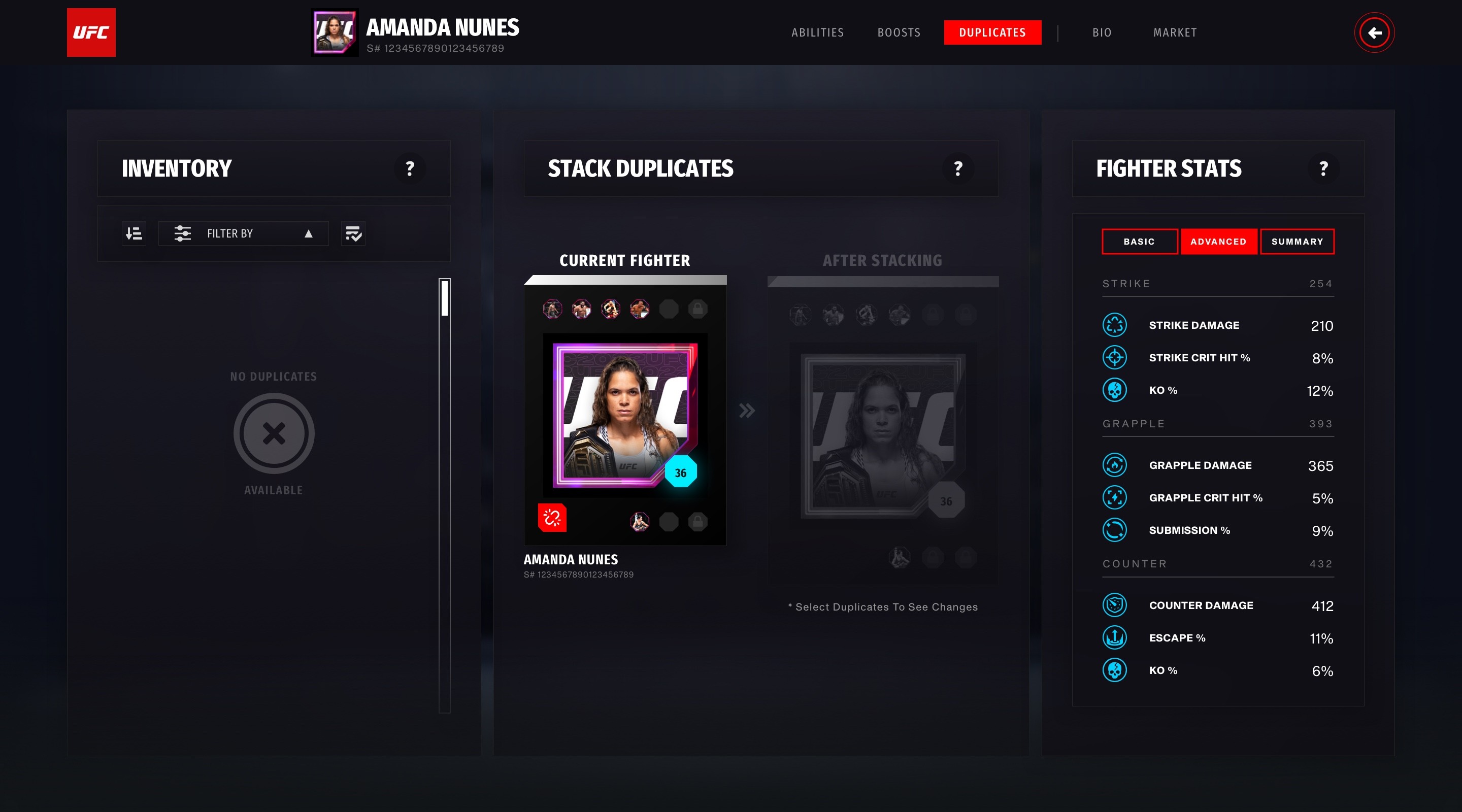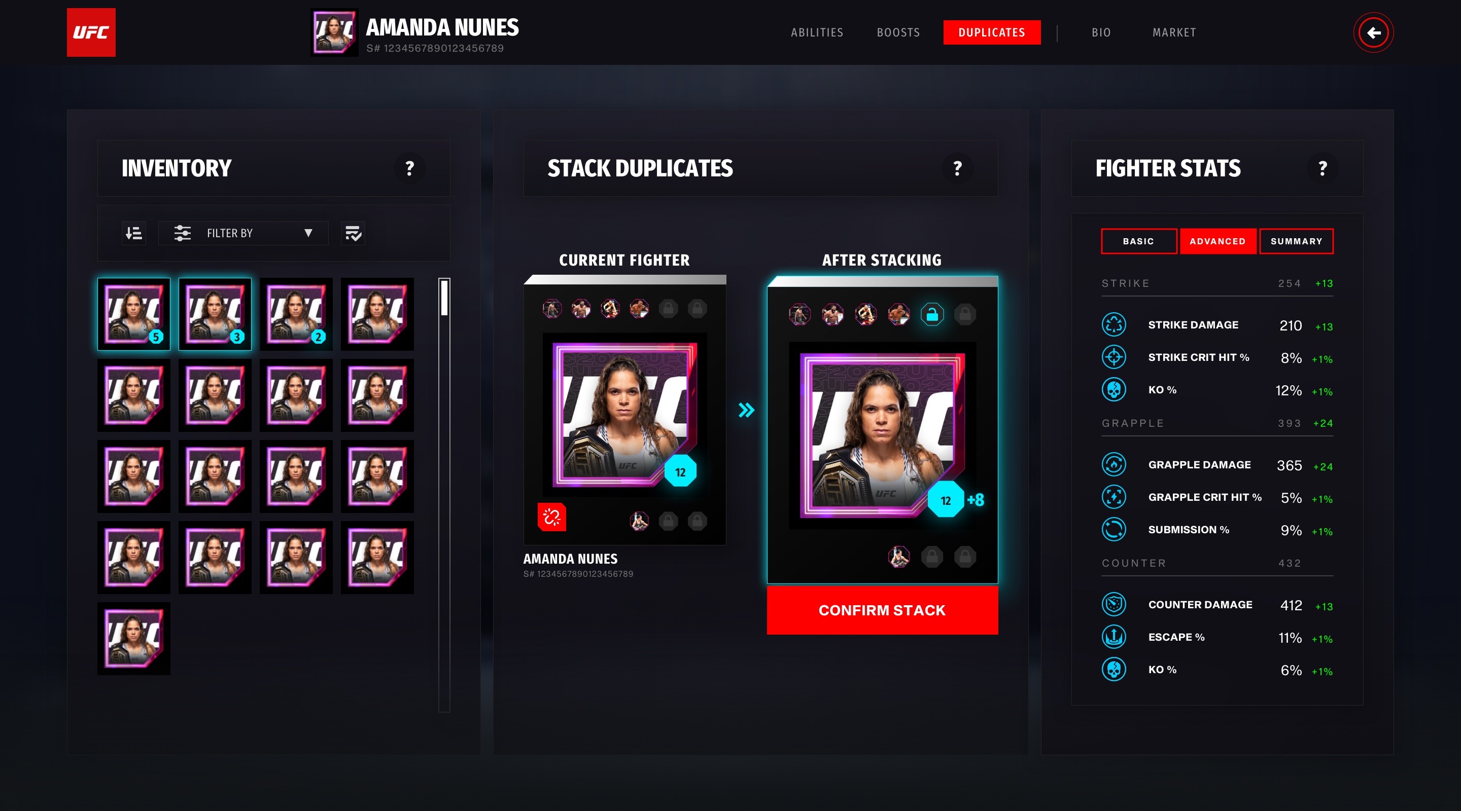Once core flows were approved, I transitioned into designing high-fidelity UI mockups that reflected the dark, high-energy aesthetic of UFC branding. Key elements included real-time feedback, rarity indicators, and action-driven layouts that feel game-ready.