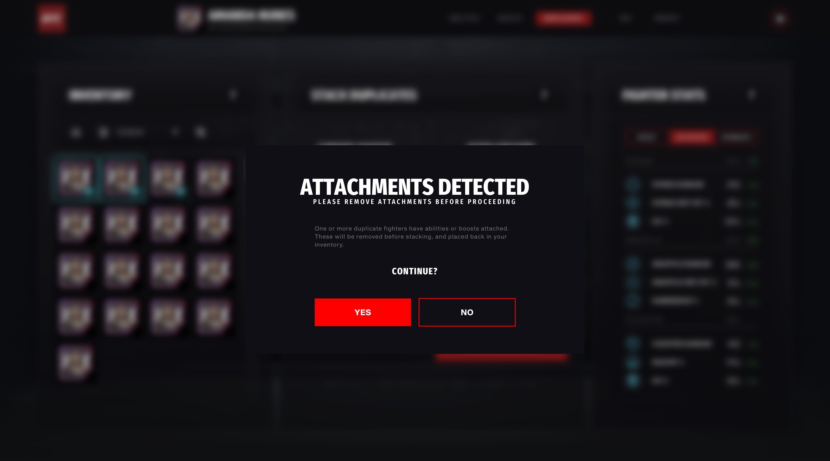 I began by building out mid-fidelity wireframes focused on core game loops: collecting fighters, managing fighter equipment/abilities, and engaging in asynchronous live matches. These screens helped us rapidly validate interaction patterns before committing to the final visual style.